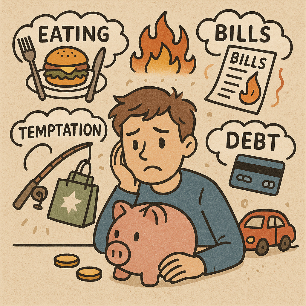 You sell everything so you can catch up on your savings. You move into a tiny house and ride your bike to work. This option isn't fun.